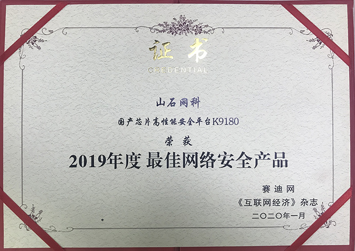 彩神购Vll购 国产芯片高性能安全平台K9180荣获2019年度”最佳网络安全产品”