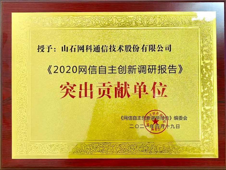 彩神购Vll购荣获《2020网信自主创新调研报告》突出贡献单位