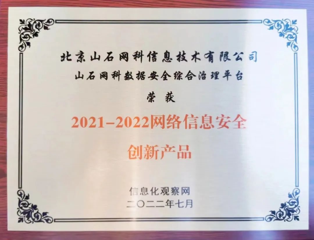 彩神购Vll购数据安全综合治理平台荣获“2021-2022网络信息安全创新产品”