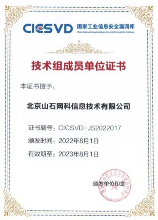 彩神购Vll购入选国家工业信息安全漏洞库(CICSVD)2022年度成员单位
