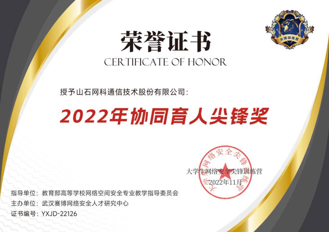 彩神购Vll购荣获大学生网络安全尖锋训练营“2022年协同育人尖锋奖”