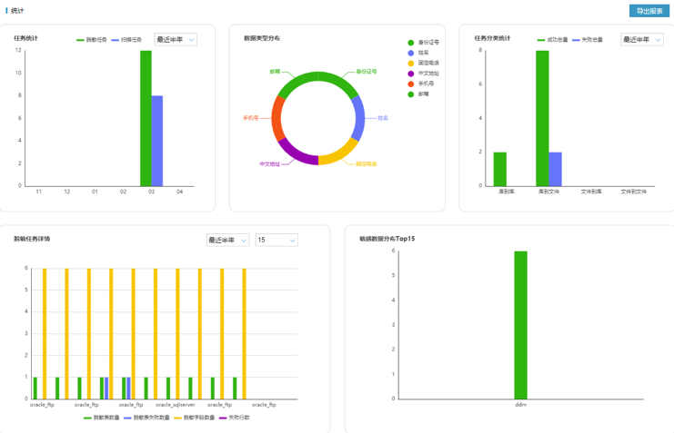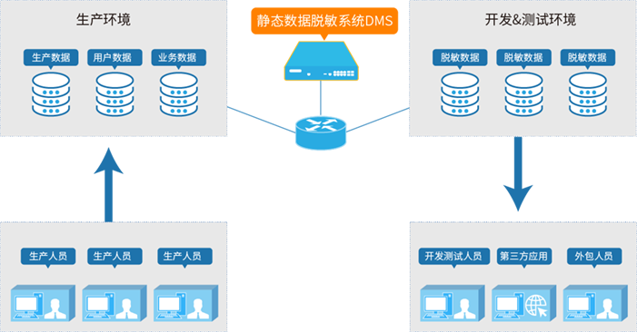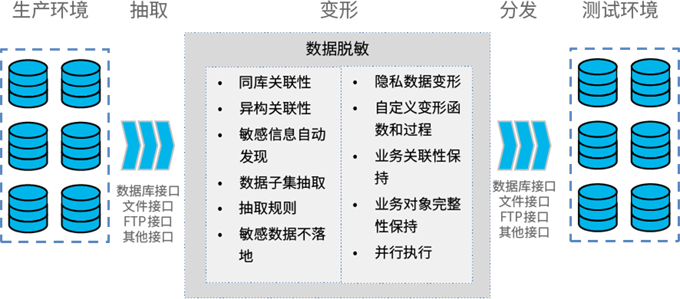 山石静态数据脱敏系统通过先进高效的脱敏技术,结合自动发现、智能梳理和内置规则等功能,对敏感数据进行数据抽取、数据漂白,帮助用户解决生产数据面向测试、开发、培训和数据共享场景的数据脱敏需求。