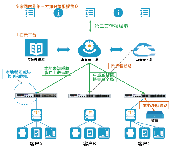山石智影或山石云影可帮助客户遏制恶意软件带来的风险,并提供详细的报告,进而协助客户处理未知威胁事件