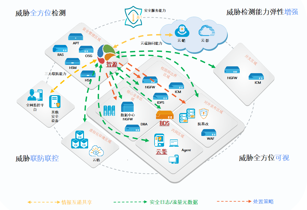 高级威胁情报、热点事件、以及同类环境发生威胁等情况时有发生,但大量已知的外部情报无法被有效利用,导致内部面临孤军奋战的处境,难以有效抵抗外部的攻击行为。