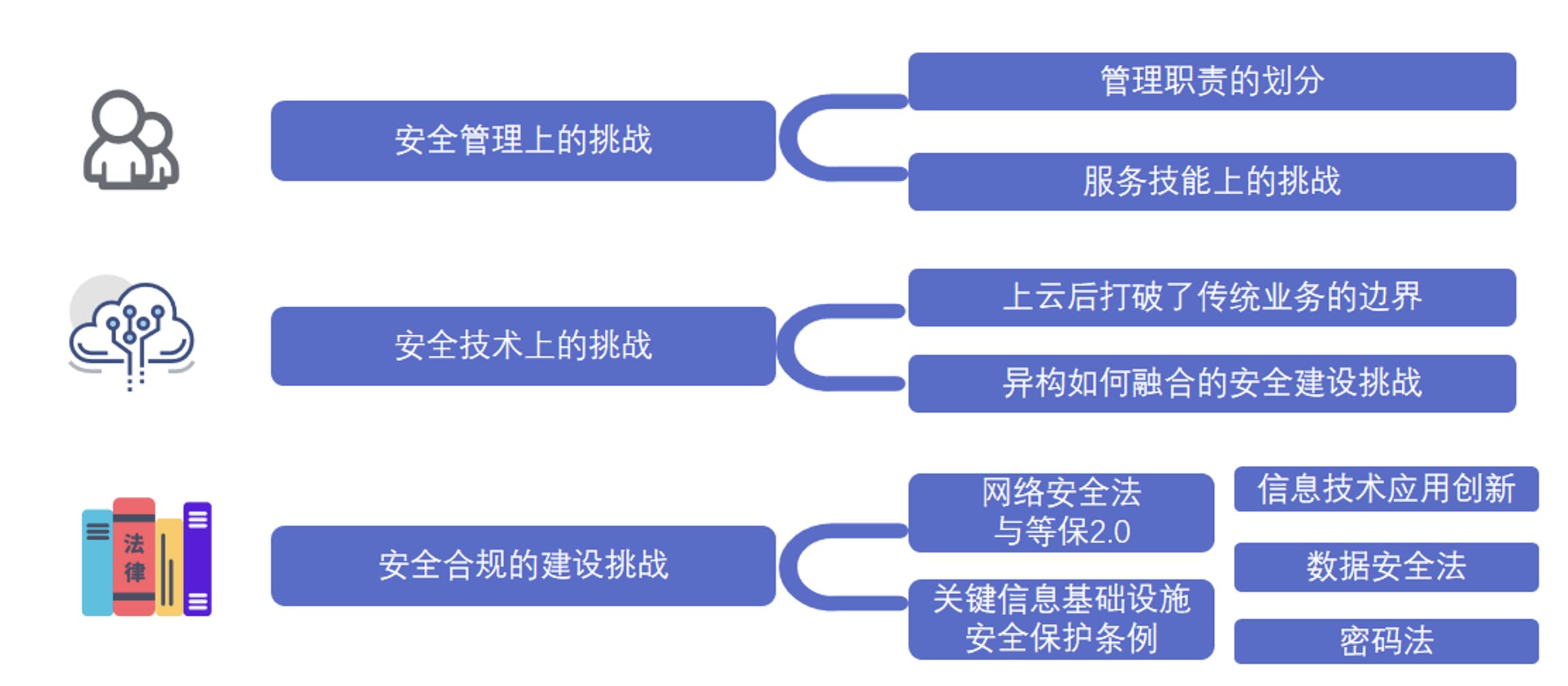 相比传统IT架构,云计算部署模式具备低成本、弹性、易用、高可靠性、按需服务等优点,但是云计算平台以虚拟化技术打破了传统的服务器及实体物理边界、专网专维的特点,将各专业各系统进行了融合上云部署,因此在业务上云前需要解决云计算安全带来的网络融合、平台融合、跨专业大数据融合等带来的安全挑战。
