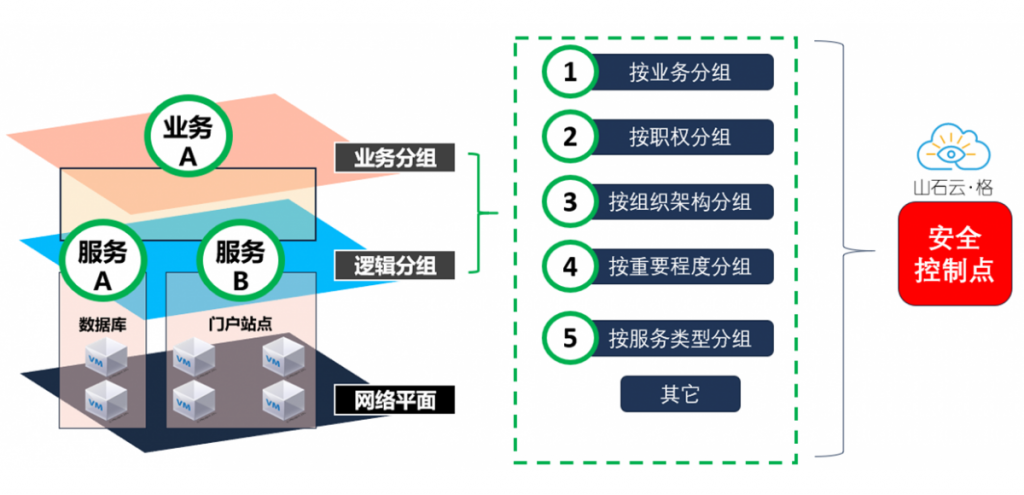 山石云·格资产分组、策略分组功能,助力管理员高效梳理云内资产,提升安全策略运维审计效率。