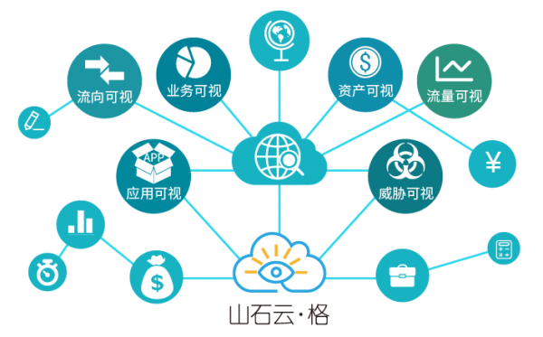 山石云·格可以基于业务组、时间、终端、应用、流量、交换关系、安全威胁等多种维度对云内网络的运行情况进行深度可视,且大屏展示功能提供云内业务交互关系和运行状况。通过直观的视图,用户可以快速查找、发现自己内部网络中安全、性能等问题。