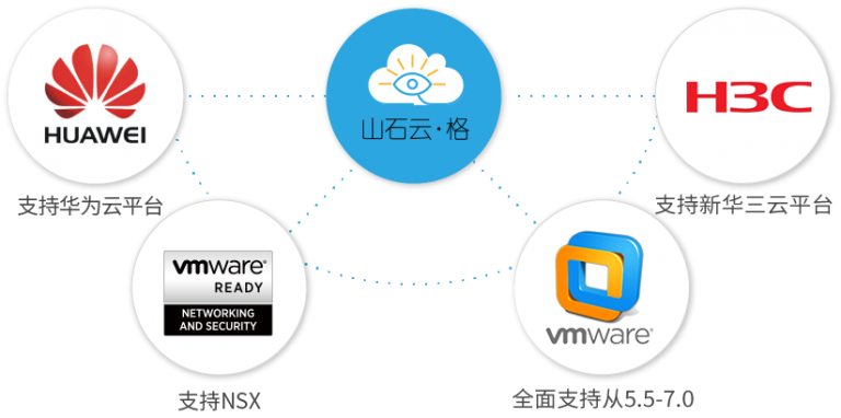 山石云·格–云内东西向微隔离可视化平台,将下一代防火墙的安全服务能力下沉至云计算环境中各个宿主机内,在基于 VMware 、新华三的云计算服务应用中,按需对虚拟机提供其全方位、细粒度的近端网络防护控制能力,以及丰富的可视化能力,帮助用户将“零信任安全模型”的理念融入云数据中心的建设过程中。