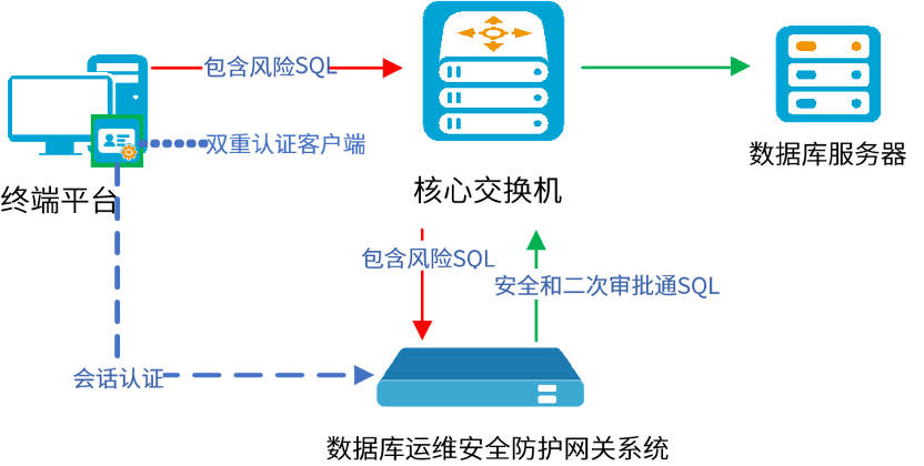 彩神购Vll购数据库运维安全防护网关系统采用旁路部署,即数据库服务器与数据库运维网关物理设备网络可达,现有的业务系统及网络拓扑均无需改动。