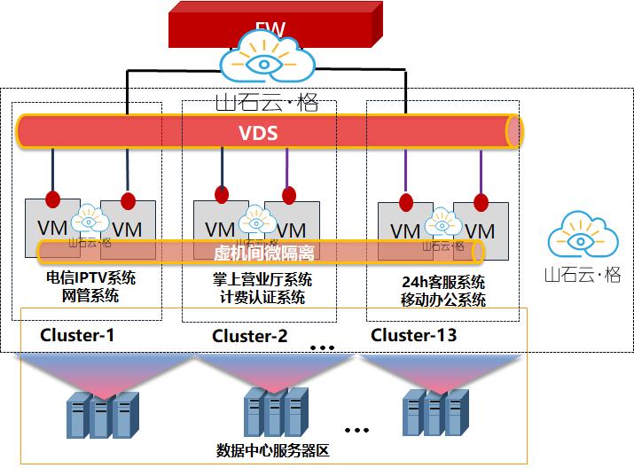 企业承载众多关键业务,资源池内业务交互繁杂,当前面临云内东西向流量缺乏有效的可视可控方案,亟需解决云内流量的可视化预警、安全管控等难题。依据网络安全法及云计算安全扩展要求,其云内资源需根据业务需求灵活划分安全域,分级管控访问权限,具备云内防入侵攻击、防病毒横向扩展能力。应用山石云·格的微隔离、IPS、AV等安全服务,结合用户现有终端杀毒产品形成云资源池内网络微隔离防护+本地查杀的整套立体防护方案。同时利用山石云·格的全分布式架构,满足运营商行业全组件HA部署要求;利用透视镜、策略助手、策略分组、SPM等功能,解决云内复杂交互关系的可视化梳理、安全策略收敛维护、运维业务运维运营等工作。